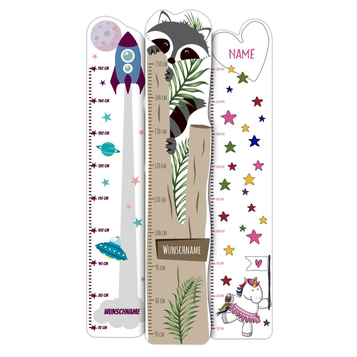 Die personalisierbare Messlatte aus Hartschaum, Holz oder als cooles Wandtattoo ist eine einzigartige und liebevolle Dekoration für das Kinderzimmer und eine schöne Geschenkidee zur Taufe oder zum Geburtstag. Überrasche Dein eigenes Kind, Dein Patenkind oder die Enkelkinder mit einem individuellen Größenmesser mit eigenem Namen. Dank der rückseitigen Metallhalterung (nur bei Kunststoff oder Holz) mit Abstandshaltern lässt sich die Kindermesslatte mit Namen ganz einfach anbringen. Die Polymerfolie mit selbstklebender Rückseite lässt sich nach Gebrauch rückstandsfrei ablösen. Der Messbereich reicht von 70 cm bis 150 cm. So sehen die Mädchen und Jungen und immer, wie schnell sie wachsen. Die personalisierte Messlatte im niedlichen und kindgerechten Design kann ganz einfach selbst gestaltet werden. So entsteht ein hübsches Unikat, das jedem Kinderzimmer eine persönliche Note verleiht.